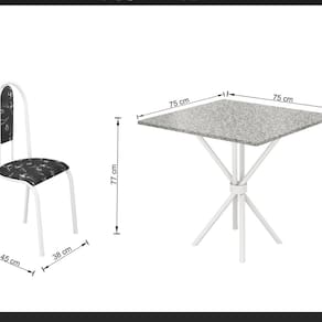 Ideal para sua cozinha, trazendo utilidade e praticidade para seu dia a dia. Acabamento da Cadeira/Banco: Pintura Epóxi Acabamento da Mesa: Pintura Epóxi Ambiente Principal: Cozinha Cadeira/Banco estofada: Sim Cadeira/Banco suporta até: 90 kg Complexidade da Montagem: Baixa: pode ser montado por uma pessoa sozinha Cor: Branco Floral/Ocre Cor da Base: Branco Cor do Produto: Branco Floral/Ocre Cor do Tampo: Cinza Enchimento do Assento: Espuma D-10 Escala de Brilho: Brilhante Espessura do Tampo: 20 mm Estrutura do Assento: compensado Itens Inclusos: 01 caixa com 04 cadeiras/01 caixa de base/01 tampo Manual de Montagem e Instalação: https://cdn2.madeiramadeira.com.br/atributo/bm-moveis-tubulares/1951774-1534-17157096118295.pdf Material da Base da Mesa: Aço Carbono Material da Estrutura da Cadeira: Aço Carbono Medida da Cadeira/Banco (A x L x P): 95x45x38 Medida da Mesa (A x L x P): 77X75X75 Medida do Tampo (L x C x E): 75x75x2 Mesa suporta até: 20 kg Necessita Montagem: Sim Origem do Produto: Nacional Peso da Cadeira/Banco: 4 kg Peso da Mesa: 4 kg Possui Apoio Para os Pés: Não Recomendações de Uso, Manutenção e Limpeza: somente com pano levemente umidecido com água Revestimento da Cadeira/Banco: Courino Sistema de Montagem: parafusado