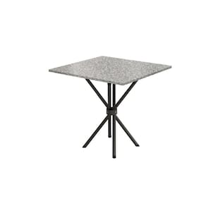 Conjunto de mesa tubular com 04 cadeiras Berlim em tubo 7/8" prata martelado com estofado em courino mosaico branco preto, base tubular de 1 1/4" e tampo de 0,75x0,75 em granito ocre.