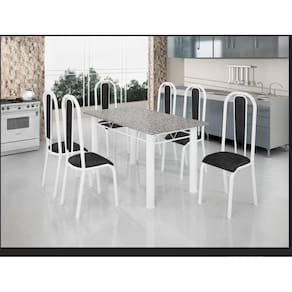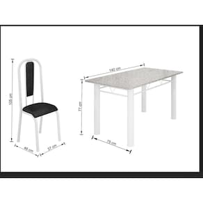 Ideal para sua cozinha, trazendo utilidade e praticidade para seu dia a dia. Medida da Mesa (A x L x P): 77x140x75 Peso da Mesa: 8,02 kg Mesa suporta até: 58.0000 Acabamento da Cadeira/Banco: Pintura Epóxi Acabamento da Mesa: Pintura Epóxi Ambiente Principal: Cozinha Cadeira/Banco estofada: Sim Cadeira/Banco suporta até: 100.0000 codigo_ean: 7909903545287 Complexidade da Montagem: Baixa: pode ser montado por uma pessoa sozinha Composição: epoxi Cor: Tubos Brancos/Estofados preto/Tampo granito Ocre Cor do Produto: Tubos Brancos/Estofados preto/Tampo granito Ocre Enchimento do Assento: Espuma D-10 Escala de Brilho: Brilhante Espessura do Tampo: 20 mm Estrutura do Assento: Compensado Itens Inclusos: 01 caixa com 06 cadeiras/01 caixa de base/01 tampo Manual de Montagem e Instalação: https://product-hub-prd.madeiramadeira.com.br/881588/documents/68a87620-02c5-4adb-9652-da991a1bc5d31676352baseacreparanA140.pdf Material da Base da Mesa: Aço Carbono Material da Estrutura da Cadeira: Aço Carbono Material do Tampo: Granito Material Principal: Aço Medida da Cadeira/Banco (A x L x P): 105x46x37 Medida do Tampo (L x C x E): 140x45x2 Necessita Montagem: Sim Origem do Produto: Nacional Peso: 89.7700 Peso da Cadeira/Banco: 4 kg Possui Apoio Para os Pés: Não Possui Pés: 01 Quantidade de Cadeiras: 6 Quantidade de Lugares: 06 Recomendações de Uso, Manutenção e Limpeza: somente com pano levemente umidecido com água Revestimento da Cadeira/Banco: Courino Sistema de Montagem: parafusado Suporta Até (kg): 100.0000 Tamanho Indicado do Tampo (L x P): 1,40x0,75