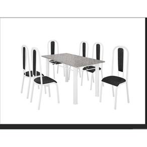 Conjunto de mesa tubular com 06 cadeiras Atenas em tubo branco com estofado em courino preto, base tubular de 3" e tampo de 1,40x0,75 em granito ocre.