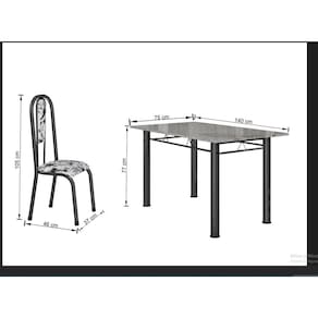 Ideal para sua cozinha, trazendo utilidade e praticidade para seu dia a dia. Medida da Mesa (A x L x P): 77x140x75 Peso da Mesa: 8,02 kg Mesa suporta até: 58.0000 Acabamento da Cadeira/Banco: Pintura Epóxi Acabamento da Mesa: Pintura Epóxi Ambiente Principal: Cozinha Cadeira/Banco estofada: Sim Cadeira/Banco suporta até: 100.0000 codigo_ean: 7909903545294 Complexidade da Montagem: Baixa: pode ser montado por uma pessoa sozinha Cor: Tubos Prata martelado/Estofados fundo branco e flo Cor do Produto: Tubos Prata martelado/Estofados fundo branco e flo Enchimento do Assento: Espuma D-10 Escala de Brilho: Brilhante Espessura do Tampo: 20 mm Estrutura do Assento: Compensado Itens Inclusos: 01 caixa com 06 cadeiras/01 caixa de base/01 tampo Manual de Montagem e Instalação: https://product-hub-prd.madeiramadeira.com.br/881762/documents/b23cc735-e025-4351-b68e-b4fecfceb5ae1677882baseacreparanA140.pdf Material da Base da Mesa: Aço Carbono Material da Estrutura da Cadeira: Aço Carbono Material do Tampo: Granito Medida da Cadeira/Banco (A x L x P): 105x46x37 Medida do Tampo (L x C x E): 140x45x2 Necessita Montagem: Sim Origem do Produto: Nacional Peso da Cadeira/Banco: 4 kg Possui Apoio Para os Pés: Não Quantidade de Cadeiras: 6 Quantidade de Lugares: 06 Recomendações de Uso, Manutenção e Limpeza: somente com pano levemente umidecido com água Revestimento da Cadeira/Banco: Courino Sistema de Montagem: parafusado