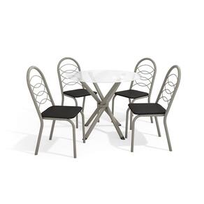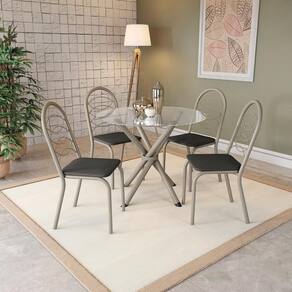 Os produtos da linha crome da Kappesberg possuem estrutura de metal e acabamento polido. As estruturas cromadas são feitas através de um processo 100% autorizado, enquanto que as estruturas pintadas, utilizam tinta epóxi em sua composição, tornando o produto mais resistente e durável. O conjunto de mesa Volga com 4 cadeiras Kappesberg é ideal para momentos de lazer e descontração. A estrutura metálica na cor níquel com o vidro com espessura de 6mm transparente garante elegância ao produto, associada ao encosto das cadeiras, com detalhes diferenciados e estilosos. Os assentos são estofados e recobertos em corino, dando ainda mais conforto aos seus momentos.