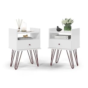 Dimensões do Produto Montado:Altura: 41 cmLargura: 62 cmProfundidade: 36 cmObservações:- Pés metálicos em pintura epóxi- Sapatas anti-riscos- Puxador clean- Conjunto com 2 Mesas de Cabeceira