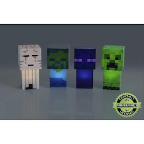 PREPARE-SE PARA A AVENTURA Modelado com base nas multidões hostis mais populares dos videogames, este conjunto de 4 peças Minecraft Figure Mood Light está pronto para iluminar o local. Deve estar bem escuro se um Creeper, Enderman, Ghast e um Zumbi aparecerem em sua aventura. Felizmente, todos eles trouxeram sua própria luz. Com 2,5 polegadas, cada uma das figuras do Mini Minecraft ilumina seu espaço com um brilho suave e etéreo de suas luzes LED que economizam energia. Alimentado por baterias de 3 botões (incluídas), há também um conveniente botão liga/desliga na parte inferior para preservar as baterias. Essas adoráveis luzes de humor do Minecraft são uma ótima adição à coleção de qualquer fã. Adorável? Desculpe Quisemos dizer aterrorizante, obviamente. O QUE ESTÁ INCLUÍDO? Este conjunto de 4 peças Minecraft Figure Mood Light inclui o seguinte: (1) Creeper light (1) Enderman light (1) Ghast light (1) Zombie Light (3) baterias de células tipo botão