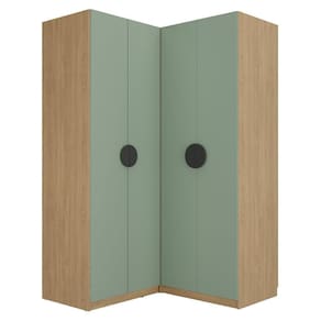 Conjunto Modulado Infantil 2 Peças com 4 Portas 2 Gavetas com Nichos e Sapateira Joy Kids CabeCasa MadeiraMadeira Verde/Avena. O guarda roupas Joy Kids CabeCasa foi desenvolvido para trazer a experiência de ter seu guarda roupas planejado por uma personal organizer. O móvel possui prateleiras reguláveis e removíveis que se adaptam a diversas necessidades. Conta também com um kit que pode conter gabaritos de dobra para roupas, separadores de cabides e adesivos para identificar todos os espaços. Possui um módulo de sapateira ideal para quem precisa de espaço para guardar seus calçados e ainda pendurar acessórios, além de um nicho que confere mais versatilidade e organização ao espaço, possui montagem flex, podendo ser montado tanto para direita quanto para esquerda. Além disso, tem design atual e alinhado às suas tendências que irão trazer muito mais sofisticação e aconchego para a decoração.