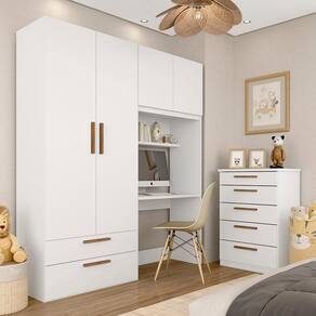 Conteúdo da Embalagem: 01 Guarda Roupa 01 Modulado 2 portas e Escrivaninha 01 Cômoda Manual de Montagem Acessórios para Montagem
