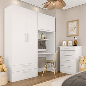 Conteúdo da Embalagem: 01 Guarda Roupa 01 Modulado 2 portas e Escrivaninha 01 Cômoda Manual de Montagem Acessórios para Montagem