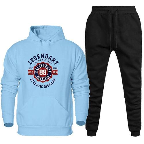 Conjunto Moletom Canguru Estampado California Com Calça Cordao Ajustavel Flanelado Maximo Conforto - Azul Claro - G