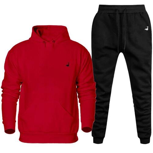Conjunto Moletom Casaco Canguru Com Capuz e Calça Elastico Cordao Ajustavel com Bolso Flanelado - Vermelho - M