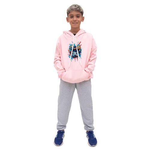 Conjunto Moletom Com Capuz Infantil Menino Estampado e Calça Basica Lisa Confortavel - Rosa - 16