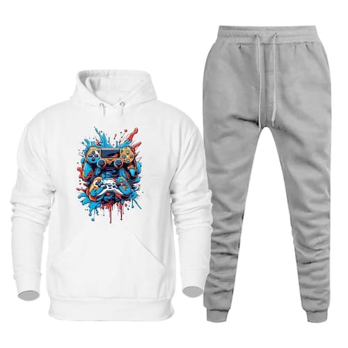 Conjunto Moletom Flanelado Kit Blusa e Calça Confortavel Estampa Colorida Canguru Esportivo Macio - P - Branco