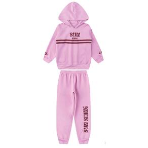 Conjunto Moletom Infantil felpudo Feminino com capuz e calça - 4 - Rosa