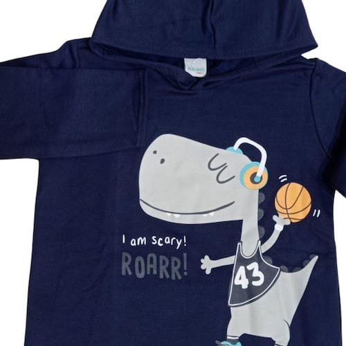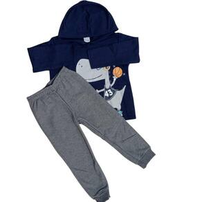 Confeccionado em algodão o conjunto Infantil Masculino Manga Longa Moletom Dinossauro da marca Malwee kids. Blusa com estampa de dinossauro jogando basquete. Sua estampa possui textura especial, trazendo assim elegância para a peça. Blusa com punhos na barra. Gola arredondada. Possui elástico em seu cós para melhor ajuste. Ideal para os dias friozinhos.