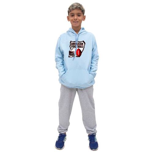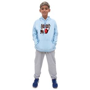 Conjunto Moletom Infantil Menino Estampado Casaco de Frio Com Capuz e Calça Lisa Macia - Azul Claro - 14