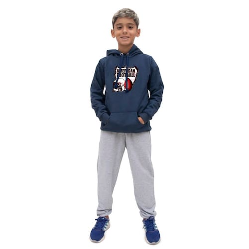 Conjunto Moletom Infantil Menino Estampado Casaco de Frio Com Capuz e Calça Lisa Macia - Azul Marinho - 12