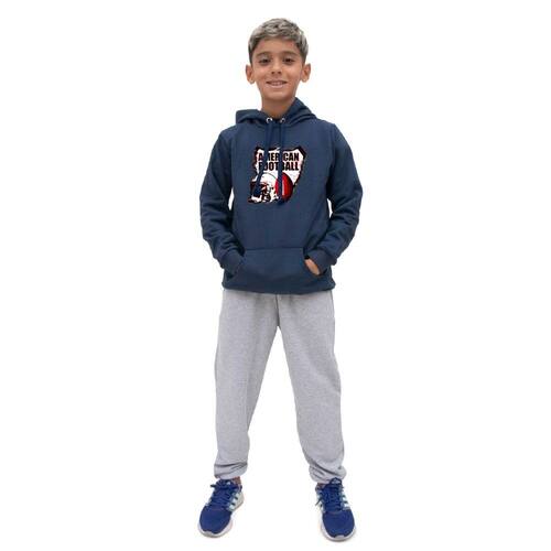 Conjunto Moletom Infantil Menino Estampado Casaco de Frio Com Capuz e Calça Lisa Macia - Azul Marinho - 14