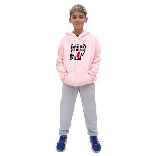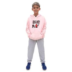 Conjunto Moletom Infantil Menino Estampado Casaco de Frio Com Capuz e Calça Lisa Macia - Rosa - 16