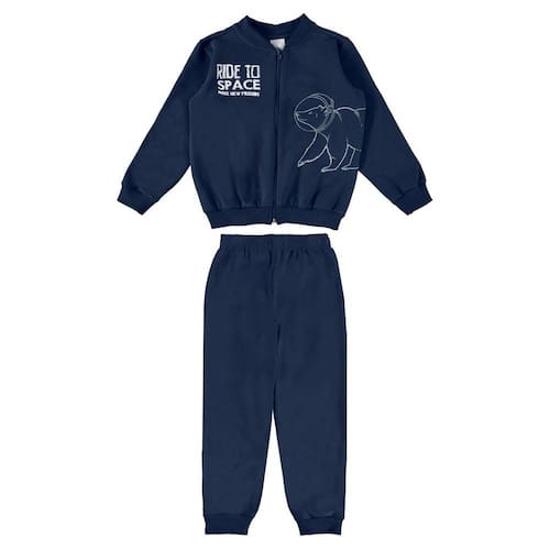 Conjunto com Jaqueta sem capuz, fechamento em zíper, e calça em moletom