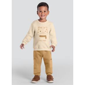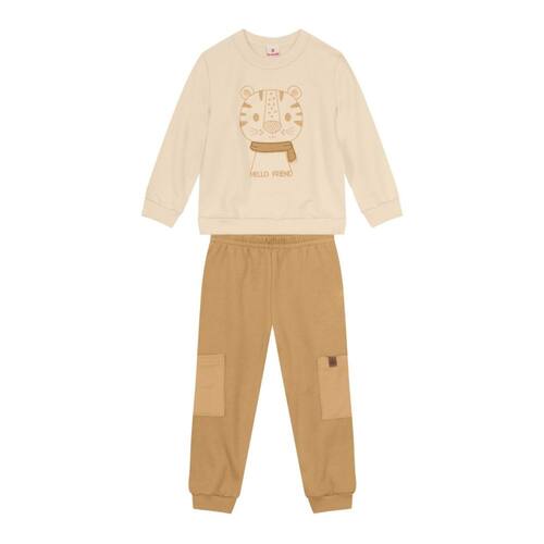 Conjunto Moletom Menino Tigre Bordado Bege - Brandili - Bege - 3