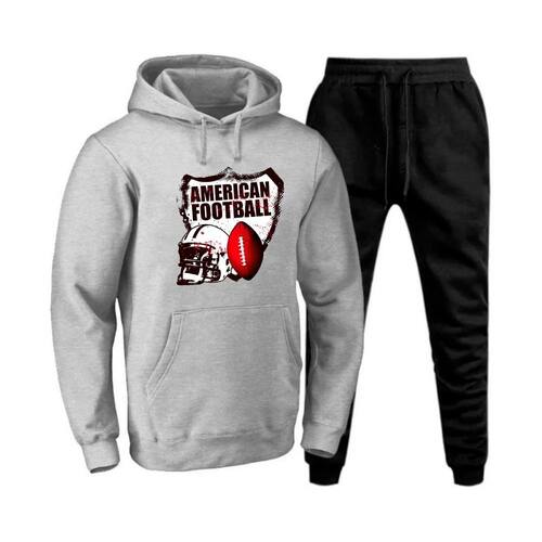 Conjunto Moletom Plus Size Estampa Futebol Americano Calça Ajustavel Confortavel Tamanho Grande - Cinza - G1