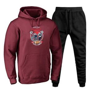 Conjunto Moletom Plus Size Tamanho Grande Canguru Capuz Estampado Com Calça Basica Cordao Ajustavel - Vinho - G5