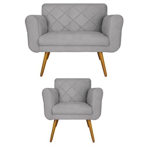 Conjunto Namoradeira e 1 Poltrona Isabella Sala de Estar Suede Cinza - LM DECOR