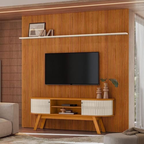 O painel é um produto perfeito, para o seu ambiente ter mais modernidade e praticidade, possui um design elegante com os seus detalhes ripados em alto relevo, testado para suportar TVs de até 75 polegadas.