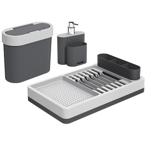 Conjunto Organização Sobre a Pia Flat 3 Peças Grafite e Cinza Coza - Itens inclusos