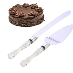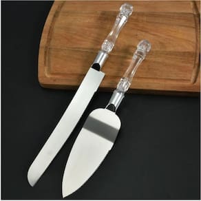 Jogo com Espatula e Faca para cortar boloCom o nosso conjunto você conseguirá atingir o seu melhor na confeitaria, poderá impressionar os seus amigos e familiares com as novas gostosuras que você irá fazer. Os doces antes tão tradicionais são repaginados de uma maneira mais colorida e com novos sabores.- Embalagem contém: 1 Faca para cortar bolo e 1 Espátula- Tamanho Faca: 30 x 3cm- Tamanho Espátula: 25,5 x 5cm- Materiais: Aço inox e acrílico