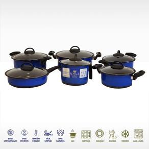 Conjunto panela royale 6 peças azul indução cooktop e gásConjunto de panelas 6 peças aço fundido com cerâmica e tampa de vidro inquebrável azul - royaleObs: para fogão de indução as panelas não podem ser antiaderentes pois ela se tornarião toxicasAço revestida de ceramica e sempre na potencia baixa estas panelas levão metade do tempo de uma panela comum alem da economiaSua cozinha merece produtos de alta qualidadeO conjunto possui revestimento especial em vitro cerâmica, confeccionada para resistir as temperaturas e evitar contaminação por germes e bactérias.Cozinha eficientemente e mantém o calor economizando até 40% do gás.Fácil de limpar e permanecem bonitas por mais tempo.Material: aço ferromagnético fundido com cerâmica de alta qualidade.Pode ser levado ao freezer, lava louças, fogão a gás, elétrico, por indução e a lenha.Composição:1 caçarola com tampa de vidro 25cm1 caçarola com tampa de vidro 22cm1 frigideira com tampa de vidro 24cm1 panela com tampa de vidro 18cm1 panela com tampa de vidro 20cm1 leiteira com tampa de vidro 16cmCaracterísticasAmbiente: cozinhaModelo / tipo: conjunto de panelasMedida externa axlxp :23.5x40.5x66cmMaterial: aço, cerâmicaCor: azulCabo: baquelitePeso: 5 klsTipo de uso: dia a diaFicha técnica- Materiais: Cerâmica- Peças incluídas: Frigideira- Quantidade de peças: 6- Material da alça: Plástico- É adequado para lava-louças: Sim- Cor: Azul- Com revestimento antiaderente: Não