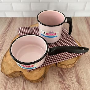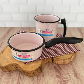 Conjunto Panela Esmaltada Ágata 1L e Leiteira 1,5L com cabos em Nylon Esmaltados Silva Rosa.