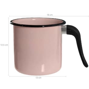 Garantia: 90 Dias / Peso: 710g / Cor predominante: rosa / Referência: 2291ROSA Dimensões da panela: 31cm (C) x 16cm (D) x 7cm (A); Capacidade: 1 litro; Dimensões da leiteira: 18cm (C) x 13cm (D) x 12,5cm (A); Capacidade: 1,5 litros; Materiais: aço carbono com pintura em esmalte vítreo e nylon; Compatível com fogões: a gás, elétrico, vitro cerâmico, indução e a lenha.