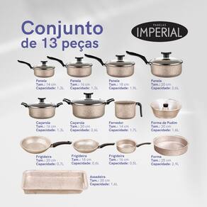 O conjunto inclui uma variedade de tamanhos de panelas e frigideiras, desde panelas menores de 16 cm até formas maiores de 30 cm. Com essa diversidade, você terá o utensílio certo para cada tipo de preparação culinária.