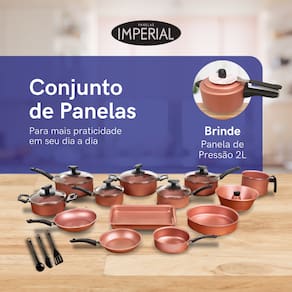 O conjunto inclui uma variedade de tamanhos de panelas e frigideiras, desde panelas menores de 16 cm até formas maiores de 30 cm. Com essa diversidade, você terá o utensílio certo para cada tipo de preparação culinária.