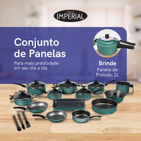 Leve a sua cozinha a um novo nível de excelência culinária com o Conjunto de Panelas Imperial® Teflon Antiaderente com Tampa de Vidro. Composto por um conjunto abrangente de panelas de alta qualidade, este conjunto irá elevar as suas habilidades culinárias e facilitar a sua rotina na cozinha.