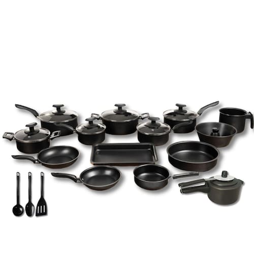 Composição do conjunto: a numeração é referente ao tamanho da boca das panelas, confira as medidas em litros nas fotos do anuncio 1 panela 14cm 1 panela 16cm 1 panela 18cm 1 panela 20cm 1 caçarola 16cm 1 caçarola 20cm 1 fervedor 14cm 1 frigideira 14cm 1 frigideira 16cm 1 frigideira 18cm 1 forma redonda 22cm 1 forma de pudim e bolo 20cm 1 forma retangular 1 panela 2 litros 3 talheres de nylon As formas podem variar de acordo com o Leve a sua cozinha a um novo nível de excelência culinária com o conjunto de panelas imperial teflon antiaderente com tampa de vidro. Composto por um conjunto abrangente de panelas de alta qualidade, este conjunto irá elevar as suas habilidades culinárias e facilitar a sua rotina na cozinha. Cada peça deste conjunto foi cuidadosamente projetada para fornecer resultados excepcionais e durabilidade em longo prazo. O revestimento antiaderente em teflon garante que os alimentos não grudem, permitindo que você cozinhe com facilidade e evite a necessidade de usar grandes quantidades de óleo ou gordura. Além disso, nossas panelas possuem tampa de vidro, permitindo que você acompanhe o processo de cozimento sem perder o calor ou o vapor essencial para a preparação dos alimentos. São tampas de vidro temperadas, inquebráveis, visando sua segurança e de sua família. A qualidade e a segurança são garantidas com o selo de qualidade inmetro, assegurando que este conjunto de panelas atenda aos mais altos padrões de fabricação e segurança. O conjunto inclui uma variedade de tamanhos de panelas e frigideiras, desde panelas menores de 16 cm até formas maiores de 30 cm. Com essa diversidade, você terá o utensílio certo para cada tipo de preparação culinária. Não apenas adequado para o seu uso pessoal, este conjunto de panelas também é perfeito para presentear alguém especial. Seja para um cozinheiro iniciante ou um chef experiente, este conjunto de panelas é um presente prático e sofisticado que certamente será apreciado. Traga eficiência e estilo para a sua cozinha com o conjunto de panelas teflon antiaderente com tampa de vidro. Prepare refeições incríveis, economize tempo e desfrute de uma cozinha mais prática e moderna. Invista na qualidade e nos desempenhos excepcionais deste conjunto de panelas, e ele se tornará um item essencial para a sua rotina culinária. No momento de realizar os seus preparativos favoritos, é essencial que você tenha uma panela que possa ser sua aliada na cozinha. Com a panela alegrete você pode ter certeza de que os sabores e aromas serão perfeitamente preservados para desfrutar de refeições mais gostosas. Solte o chef interior que existe dentro de você Materiais de qualidade O principal benefício do alumínio é que, por ser um excelente condutor de calor, os alimentos cozinham muito mais rápido que em comparação com outros metais. Por sua vez, os produtos de alumínio são bastante leves, o que os faz confortáveis para serem levados de um lugar a outro na cozinha.
