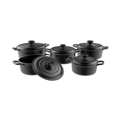 No acabamento, levam dupla camada de antiaderente polimérico interna e externamente. O que se traduz em durabilidade e praticidade na limpeza. Em seu design, três saídas de vapor simétricas tornam o cozimento uniforme. Os pegadores são produzidos em BMC, polímero de engenharia que garante resistência térmica e mecânica. Assim, as caçarolas podem ir ao forno para diversos preparos.