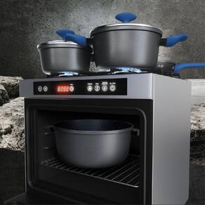 Revestimento antiaderente premium: facilita o preparo dos alimentos, evitando que grudem e permitindo uma limpeza rápida e prática. Compatibilidade com indução: cozinhe de forma eficiente com distribuição uniforme do calor. Design moderno cor azul. Tampas de vidro temperado: com saída de vapor para preservar o sabor e os nutrientes. Cabos ergonômicos e seguros: oferecem conforto e segurança durante o manuseio. Resistência e durabilidade: fabricado com materiais de alta qualidade, resistente a riscos e abrasões.