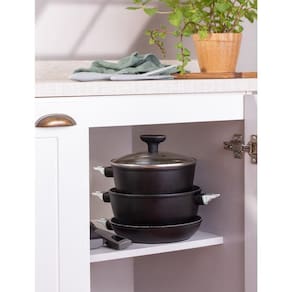 As panelas são de indução e possuem cabos removíveis, facilitando o manuseio, armazenamento e até mesmo levá-las diretamente à mesa. Além disso, o conjunto é composto por uma caçarola com tampa de vidro, uma panela com tampa de vidro e uma frigideira, atendendo a todas as suas necessidades culinárias.