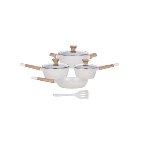 - 01 panela: 16cm - 1,2 l - 01 panela: 18cm - 1,6 l - 01 caçarola: 20cm - 2,25 l - 01 frigideira: 20cm - 1 l - 01 espátula vazada: 29,5 x 7 x 2 cm Ean: 7908216126671