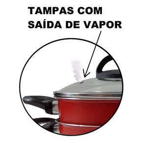 Marca: Marpal Material: Alumínio Teflon Antiaderente Material das Tampas: Vidro Temperado Material Alças e Poméis: Baquelite Espessura: 1,0 mm Cor: Vermelha