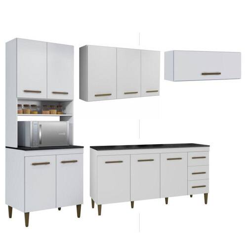 Conjunto Paneleiro 4 Portas Balcão 3 Portas Aéreo 3 Portas e 1 Aéreo basculante Branco