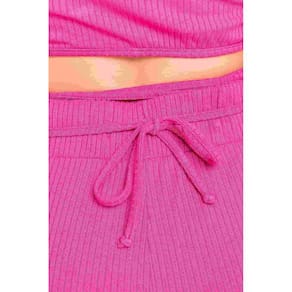 Conjunto Pantalona top em Malha Canelada, possui uma calça pantalona forrada de cós largo, bolsos frontais em um top, gola redonda com amarrações. A pantalona é bem acinturada e modela a silhueta sem marcar o corpo, por ser reta e larga, deixa a cintura mais acentuada sem marcar as curvas, ótima para compor looks formais e casuais, pois é uma peça bem versátil. Código do produto: 222931000201 Marca: Khalli