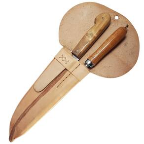 Material: - Couro; - Imbuia; - Aço Carbono 1070: Possui grande resistência e mantém o fio por muito tempo. Por ser aço carbono, é um material que oxida com facilidade, porém, a oxidação não interfere no fio. Para melhor conservação visual é necessário seguir os cuidados indicados a cima.