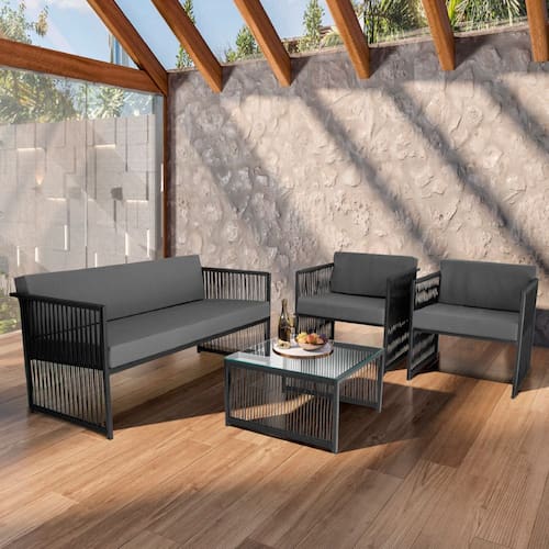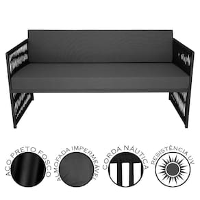 Conjunto para Área Externa de Corda Náutica - 02 Poltrona Namoradeira Mesa de Centro Santiago - Preto