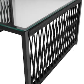 Conjunto Para área Externa De Corda Náutica Preto/preto Que tal trazer modernidade para sua area de lazer? O Kit Santiago oferece estilo unico, deixando seu ambiente ainda mais aconchegante. Composto por 1 poltrona, namoradeira e uma mesa de centro com tampo de vidro. Suas estruturas sao fabricadas em Aco Carbono, com acabamento em Corda Nautica, proporcionando resistencia e durabilidade. Possui assentos e encostos estofados com material Impermeavel e espuma D28 o que proporciona uma sensacao de suavidade ao sentar-se. Garantindo conforto e praticidade. ESPECIFICACOES TECNICAS: - Material: Aco Carbono; - Material do Assento: Espuma D28; - Material do Encosto: Espuma D28; - Acabamento: Corda Nautica; - Impermeavel: Sim; - Possui Tampo? Sim; - Possui Vidro? Sim; - Quantidade de Poltrona: 1 Poltrona; - Quantidade de Namoradeira: 1 Namoradeira; - Produto Precisa de Montagem? (Sim/Nao): Nao; - Peso Total Suportado: 150kg; - Garantia: 3 Meses; - Instrucoes de Cuidado: Limpar com pano umedecido e sabao neutro; - Dimensoes do Produto (LarguraXProfundidadeXAltura) Mesa: 60x60cm / Poltrona: 60x73x65cm / Namoradeira: 140x73x65cm - Conteudo da Embalagem: (01 Mesa de Centro, 01 Poltronas e 01 Namoradeira). Marca: ACESSE MÓVEIS