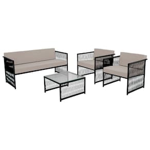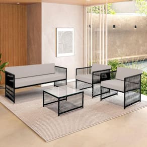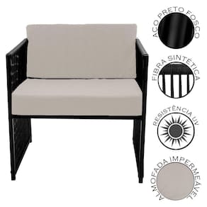 Os assentos e encostos das poltronas e da namoradeira sao estofados com material Impermeavel e espuma D28 o que proporciona uma sensacao de suavidade ao sentar-se, criando um ambiente acolhedor e relaxante. Ideal para areas internas ou externas, o Conjunto Santiago completa o ambiente com charme e funcionalidade.