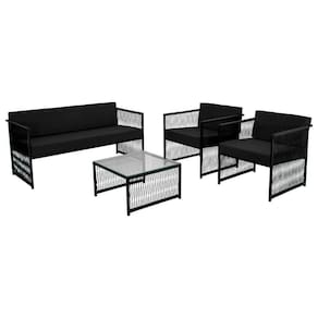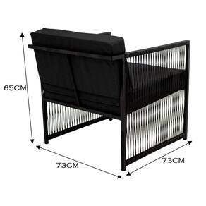 Os assentos e encostos das poltronas e da namoradeira sao estofados com material Impermeavel e espuma D28 o que proporciona uma sensacao de suavidade ao sentar-se, criando um ambiente acolhedor e relaxante. Ideal para areas internas ou externas, o Conjunto Santiago completa o ambiente com charme e funcionalidade.