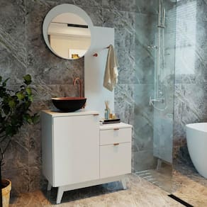 O Conjunto para Banheiro BN3680 possui estrutura em MDP 15mm e acabamento pintura UV. Produto pode ser montado tanto no lado direito como no esquerdo. Possui 1 prateleira que suportam 3kgs, 1 gaveta com corrediça metálica e que suporta 3kgs, 2 portas com dobradiças metálicas, puxadores metálicos, 2 suportes para toalhas cromado, 1 espelho redondo de 3mm com tamanho 45x45cm e 4 pés em PVC Branco. Produto suporta até 22kgs. Não necessita fixação na parede. Conteúdo da embalagem: móvel, ferragens e manual de montagem. A fixação das peças e/ou acessórios é feita por parafusos, cavilhas e minifix. Para uma limpeza mais efetiva, utilizar apenas pano macio umedecido e sabão neutro. Não utilizar produtos abrasivos. Garantia de 03 meses contra defeitos de fabricação. Medidas do produto (AxLxP): 183,4x80x40,3cm. Peso do produto: 29,95kgs.