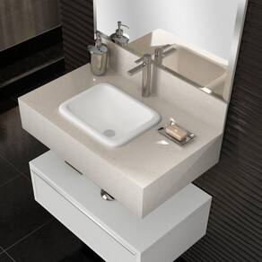 1x Bancada em Porcelanato Para Banheiro 60cm Max Com Cuba Embutida Bianco Largura: 80 cm Altura: 32 cm Peso: 20,284 kg Profundidade: 50 cm Necessita Montagem: Não